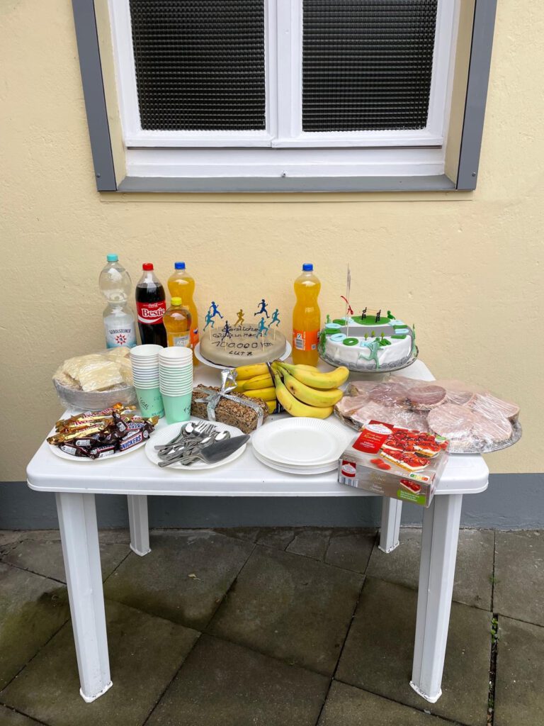 PPS: Mein herzlicher Dank geht an Markus, Peter und Schluppe für die Begleitung auf meinem Jubiläumslauf. Ebenso an Jenny für die Organisation der kleinen Party zu Hause und natürlich an die Gäste und Gratulanten. Ihr wisst ja, ich bin die ganze Zeit nur für euch gelaufen.