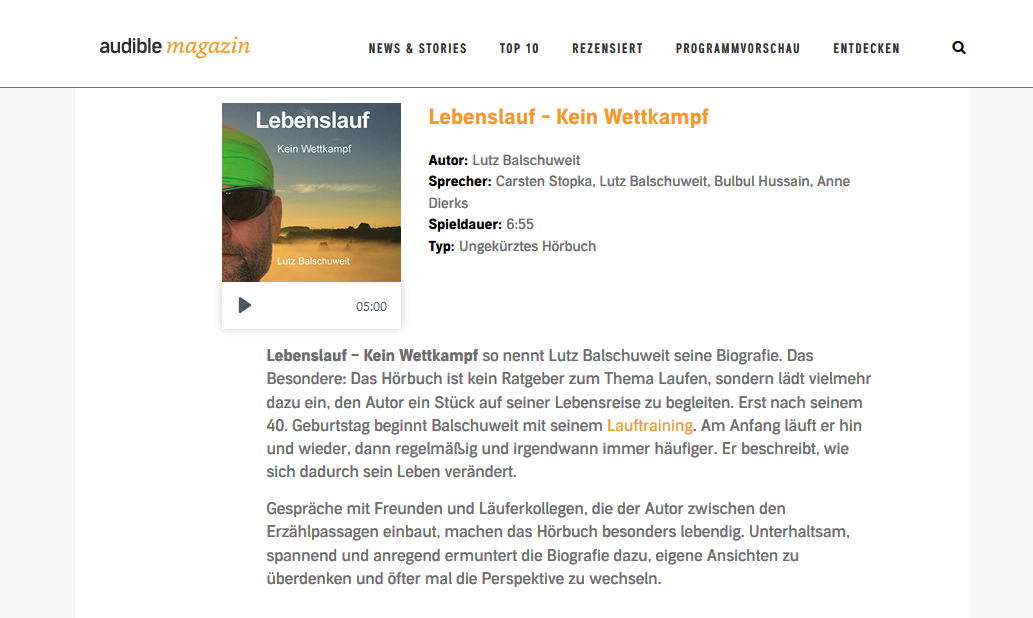 22.01.2019 – “Lebens­lauf – kein Wett­kampf – das Hör­buch!” (rad-ab.com) Zum online Arti­kelals PDF laden