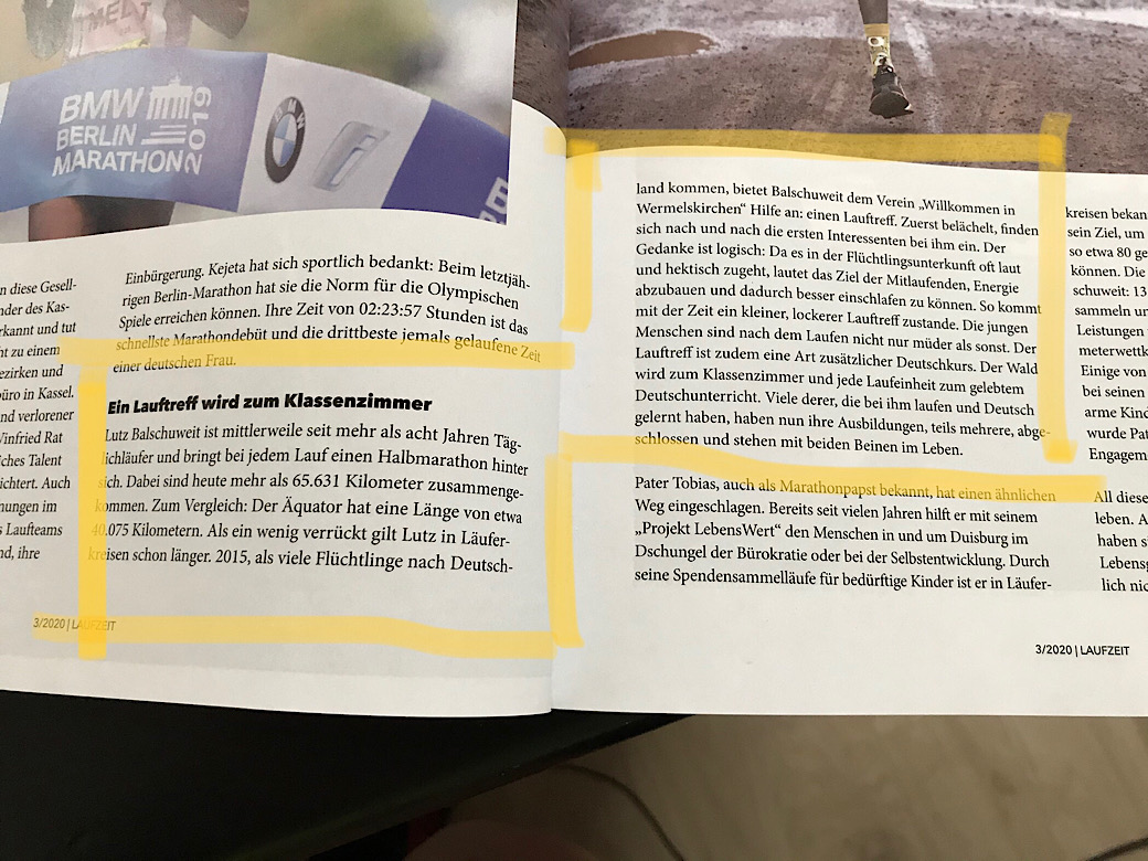 03.04.2020 – Lauf­zeit – Das Maga­zin für Lauf- und Aus­dau­er­sport 3/2020. Erwäh­nung im Bericht “Die Flucht nach vor­ne” hier als JPG
