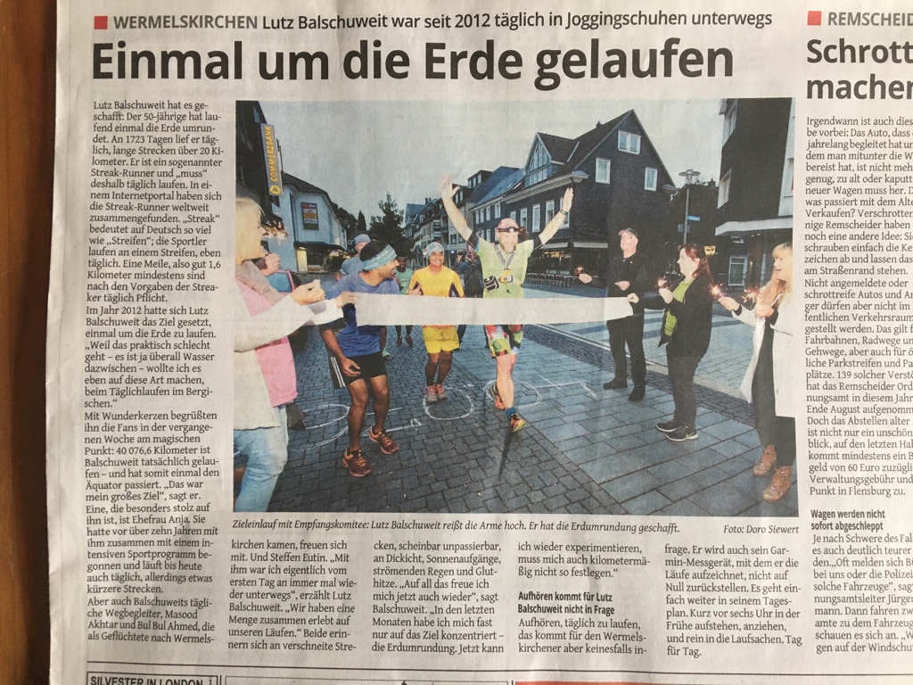 28.09.2016 – Ber­gi­scher Anzei­ger – “Ein­mal um die Erde gelau­fen