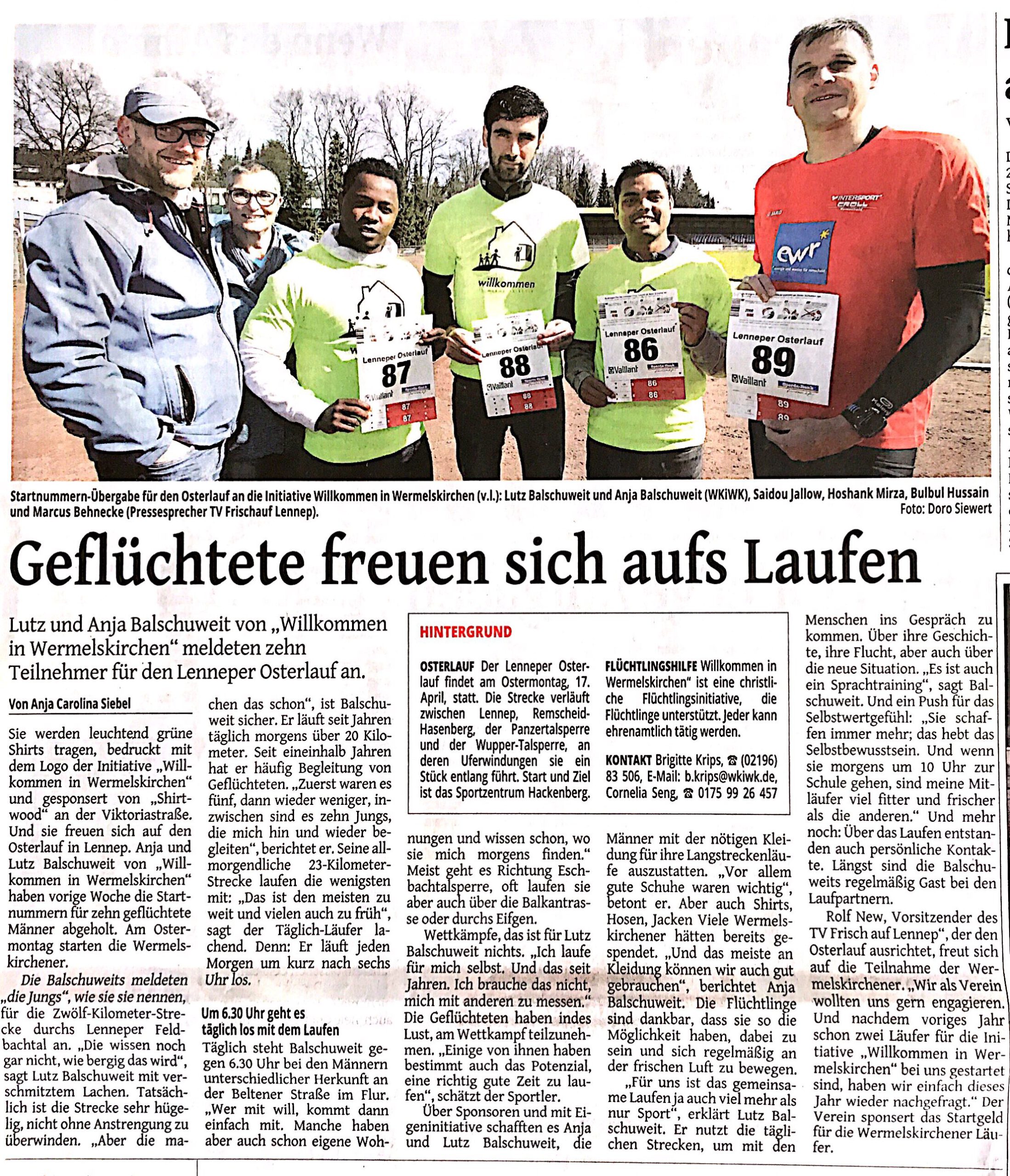 31.03.2017 – Wer­mels­kir­che­ner Gene­ral­an­zei­ger “Geflüch­te­te freu­en sich aufs Lau­fen” Neu­es Fens­ter mit Foto